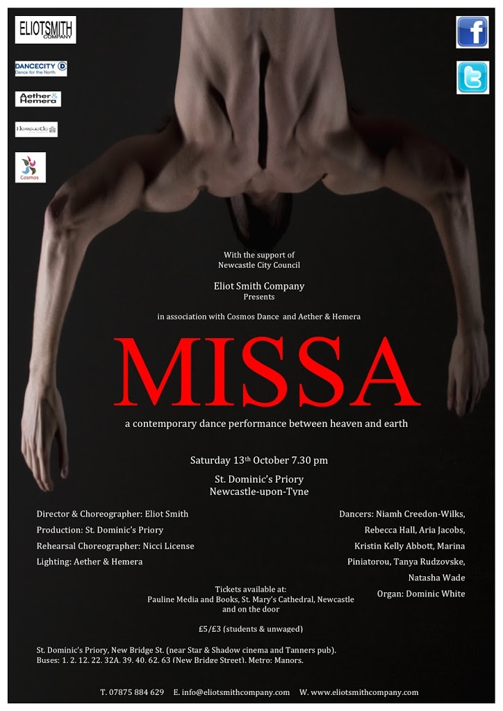 Our good friend Dominic White (founder of Cosmos Dance) is patron of Eliot Smith’s Company and is excited about contemporary dance in the Ouseburn area. He is hosting the performance, this Saturday the 17th October, 7.30pm, @ St. Dominic’s Priory, Newcastle.