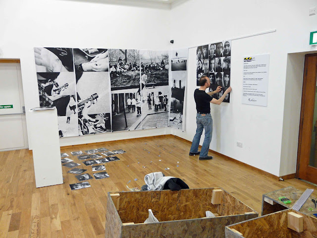 | Sebastian Messer of Northumbria’s School of the Built & Natural Environment installs the exhibition. Image Courtesy PlayToon. |